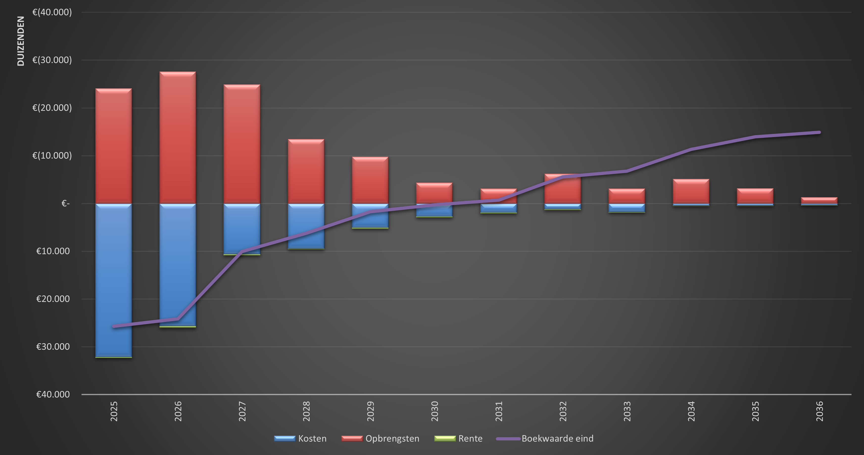 Toelichting op de tabel: (€-1: Opbrengsten > Kosten , €1: Kosten > Opbrengsten)